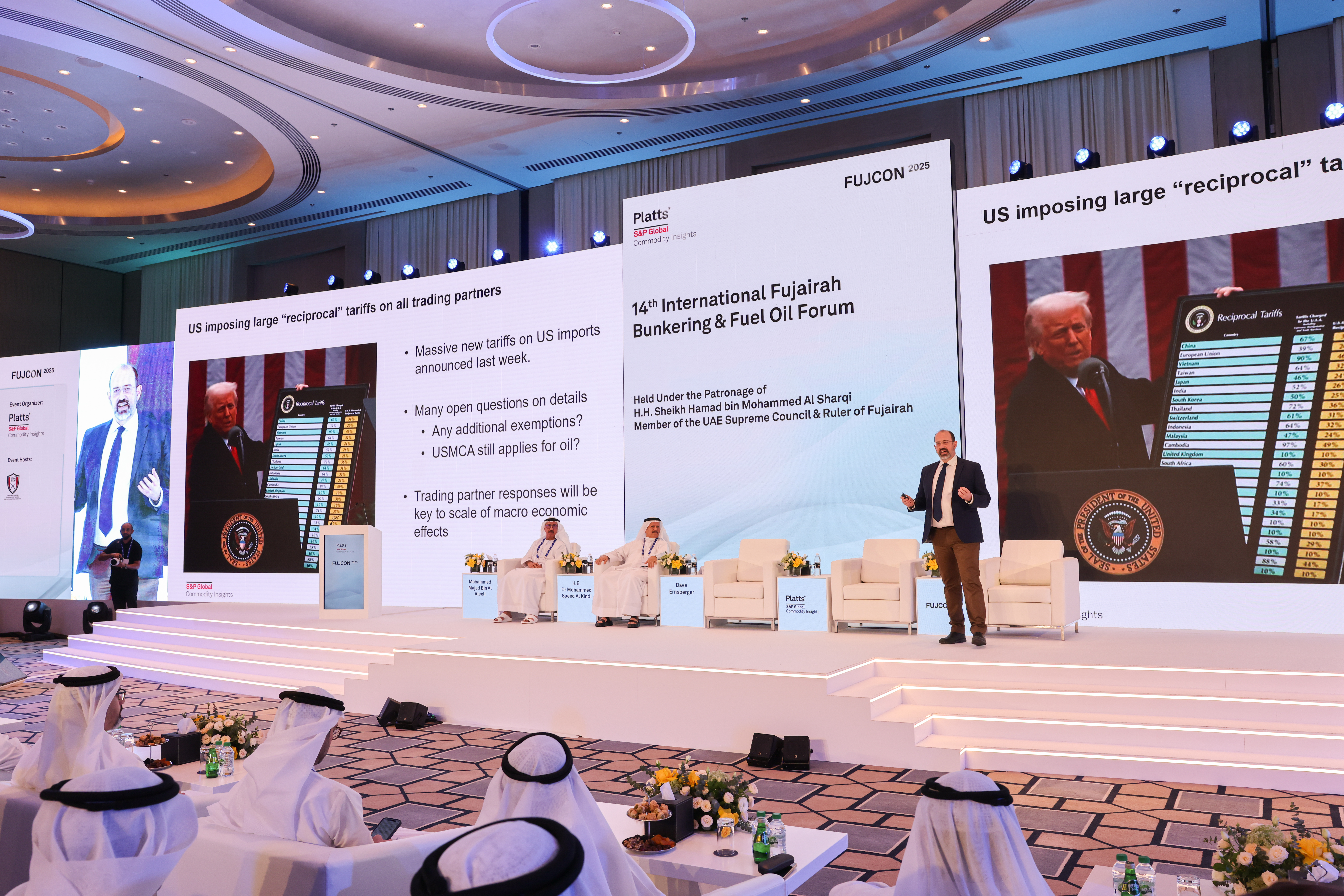 The oil and natural gas industry faces "unprecedented" and "uncertain times" with trade and tariff changes on an almost daily basis and goals to reduce carbon emissions facing the reality that nothing will work unless it’s economical, senior industry executives said at the 32nd annual Middle East Petroleum & Gas Conference in Bahrain’s capital Manama on May 26-28. With the country’s oil minister Mohamed bin Mubarak Bin Daina at the helm, Bapco Energies CEO Mark Thomas and S&P Global Commodity Insights Co-President Mark Eramo opened the conference. A successful energy transition depends on advancing traditional and renewable energy at the same time, Eramo told the conference. The Middle East continues to anchor global energy supply, policy and pricing, he noted. But energy must be affordable, with refineries and other downstream industries dependent on low costs to succeed. Carbon must be seen as an asset, not just a liability, the co-president noted. Developing countries are choosing energy security over speed of their energy transitions, with economic growth, affordability and energy access taking precedence over rapid decarbonization. One-size-fits-all approaches to transition are neither fair nor effective in a divided global energy economy, he noted. Natural gas is top of mind for energy transition in Saudi Arabia, where the fuel will "be a key beyond 2050," Musaab al-Mulla, VP of market analysis and sustainability for Saudi Aramco, told a panel. He noted gas has been important for the country since the 1970s when industries such as power generation were being developed. Moving to hydrogen will also be key, "but it's very expensive," he said. While Aramco is ready to produce fully-certified blue hydrogen, having worked with South Korea and Japan, "there are no offtakers because of the cost, but once a demand is triggered, the supply will be there from gas." A year ago, climate goals dominated agendas, energy security was gaining momentum and $60/b crude oil wasn’t part of the debate. "Today that number is back in the headlines," Bapco Energies’ Thomas said in his opening speech. With oil demand at a record high, solar and wind renewables gaining share in electricity generation, gas demand on the rise and coal demand at all-time highs largely due to rising power consumption, "we’re not experiencing a transition away from hydrocarbons. We’re in an energy addition cycle," Thomas said. Trade tensions, geopolitical conflicts, regulatory fragmentation and supply chain shocks are no longer temporary anomalies. They are persistent realities. And they are all converging in ways that challenge long-held assumptions," he said. Attendees were asked to "lean into the difficult questions. Balance ambition with realism and remember that the objective isn’t just to transition energy, but to advance it and to build affordable, cleaner and sustainable energy solutions. FGE Chairman Emeritus Fereidun Fesharaki brought out his famed Crystal Ball and warned that while OPEC+ may need to return to market management in 2026, the market now is digesting barrels being added after years of cuts. The Crystal Ball worries about 4Q 2025," he said in his presentation. In reference to Iran sanctions, the Crystal Ball expects increasing sanctions on ports, refineries and other physical assets. The existing refinery fleet will have to run harder to replace lost capacity and meet new demand, as the EU middle deficit widens. However, the second half of 2025 is still challenging as new capacity ramps up and China "lurks as an export threat. LNG demand is seen peaking much later than oil, perhaps not until the mid-2040s, he said. Sustainable aviation fuel means making an investment close to $2 billion, Linn Tonsberg, director of BP aviation for Middle East and Africa, said. While mandates would create the demand, "there needs to be that certainty in the longer term as it pertains to the supply side in order to ensure that you can make these type of stand-alone investments. Trade discrepancies or trade imbalances from wars and sanctions have "always existed but probably they’re at a peak point right now," Tom Baker, managing director at Vitol Bahrain, said. More than 150 million barrels of oil on the water are taking different routes or going to different destinations than a decade ago, due to wars and sanctions, he said. "A lot of oil that would naturally flow into Europe is going to Africa, South America, Far East. This alone is maybe contributing 40 to 50 million barrels in excess flows." Shipping attacks in the Red Sea have contributed 30 million to 40 million barrels, he added. "That is calming down a little bit. We’re seeing more flows going through the Red Sea." But no matter what the challenge, "the markets have been very efficient at creating solutions," Baker said. "Yes, there are longer routing miles, but solutions came up in terms of different shipping alternatives, different insurance, different financing. It's created a whole different industry alongside maybe what you call the traditional trading industry. And the market -- the barrels are finding their way to market."